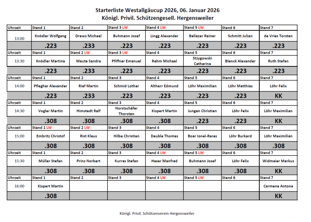 Starterliste Westallgäucup 2026, 06. Januar 2025